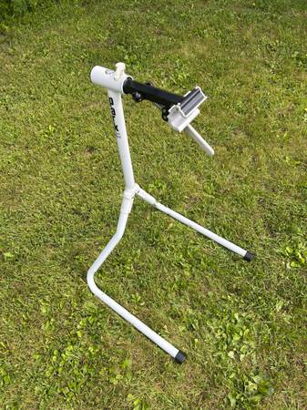 Park Bicycle Repair Stand. Folding legs, portable. $90 Working height 42-44” high Clamp is adjustable and swivels