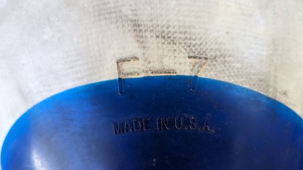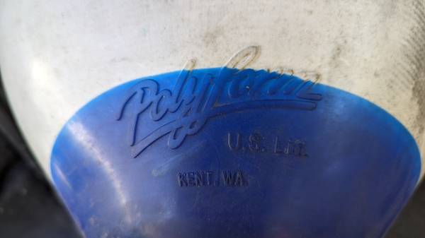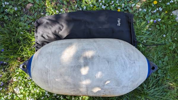 Polyform F-7 white and blue boat fender and black acrylic yarn cover. Info here:...
