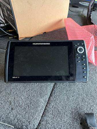 Humminbird helix 10 mega side image g4n working perfectly in great condition with no issues, used a couple times fishing . this includes the transducer , mount and power cables.