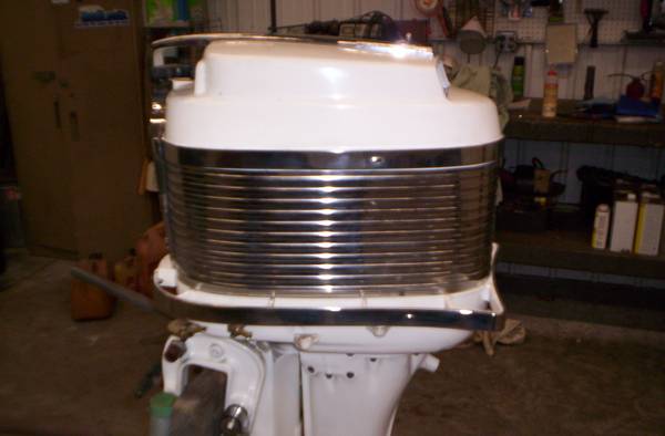 1959 Mercury Mark 55 40HP motor , restored a few year's ago , org power head, motor turn's over with good compression, new ignition parts in magneto, new water pump housing, wear plate & impeller, motor refinished in mercury white paint, probably not original but close, resealed & polished lower gear housing, has original throttle, shift control, and wiring harness, will make good motor for period type runabout, $1500.00 neg. contact Bill 309 798 63nine nine M-S 9am-10pm