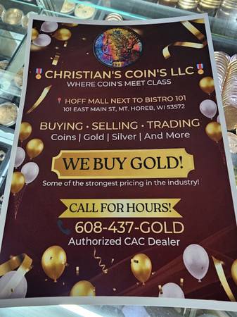 Christian's Coins 101 East Main Street Mt.Horeb WI 53572 608-437-GOLD 📢 New Store Hours! 🕒 Christian's Coins in Mount Horeb, Wisconsin has updated our hours! 🪙 Friday: 12:00 PM – 5:00 PM 🪙 Saturday:...