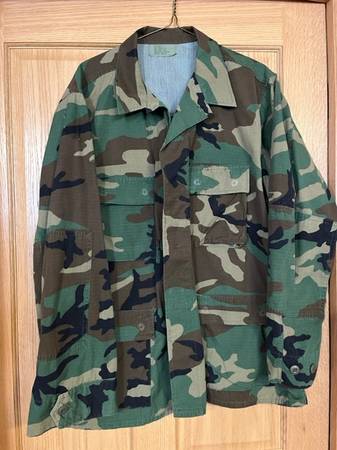 For sale, 2 each, BDU Coat, Hot Weather, Woodland Camouflage Pattern, Combat. Size, large regular. Used but very good condition. Asking $15 each or offer. Cash only. Thanks.