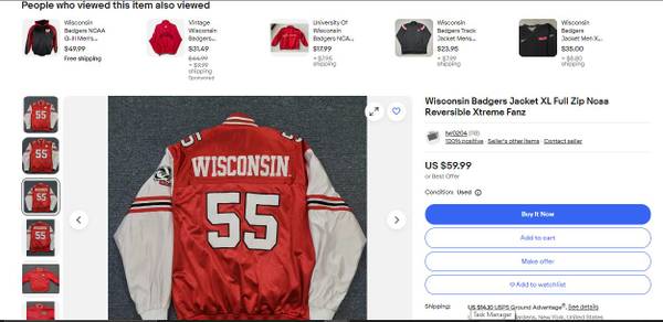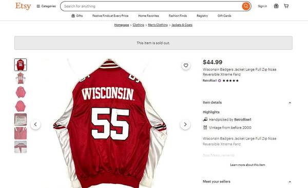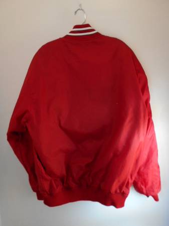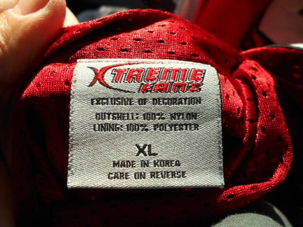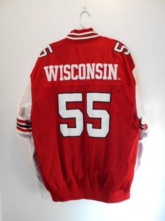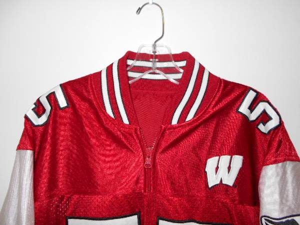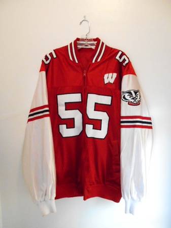 Offering a Men's Wisconsin Badgers EXTREME FANZ Reversible Jersey-Raincoat. The jacket or coat is size XL. Freshly washed and very clean with good color and showing very little wear. Everything is excellent but there is a small tear on the raincoat side of the jacket at the corners of the LEFT pocket, but this is usually the INSIDE of the jacket since the opposite side is the most colorful and best looking, so I'll list the condition as "good." Please see the pics. If you have questions, just shout.