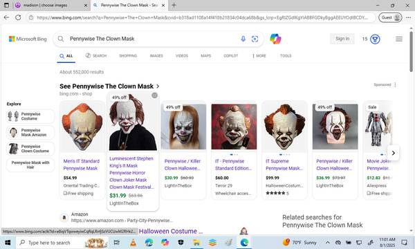 Halloween Full Cover "Pennywise The Clown" Mask - $30 (Madison)