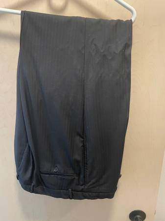 Men's Stafford suit, made in Italy. Size 42 Long, dark stripped , 100% wool with lining. Pants waist 36 inches, length 32 inches. Hardly worn and in very good condition. See pictures for further...