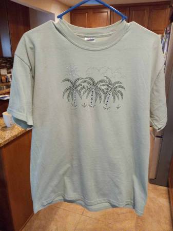 4. 'Like New' Light Green T-shirt with Palm Trees - Size Large. Asking $3.00.