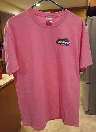 7. Pink Three Lakes Shootout Double Sided T-Shirt in Excellent Condition - Size Large. Asking $3.00.