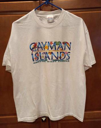 8. Cayman Islands T-shirt - Size Large. This is in Excellent Condition with no stains (the lighting makes this look yellowish but it's not). Asking $3.00.