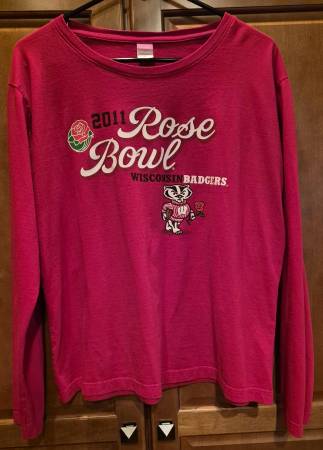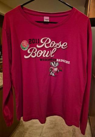 Women's Red Rose Bowl Wisconsin Badgers Top - Size XL. This is from the 2011 Rose Bowl, but it's still in Excellent Condition. It is red, but lighting makes it look a little lighter in color than it actually is.