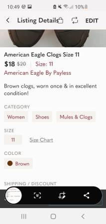 Women’s American Eagle Brown Clogs- • Condition- Slightly used in great condition • Size- 11 $10 or best offer. Sold as is and cash only. Must pick up near Monroe, WI. Let me know if you have any...