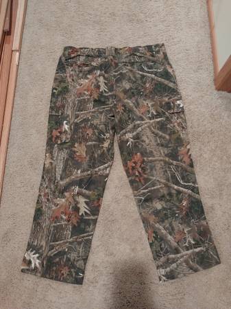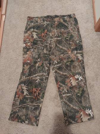 Red Head brand pants in decent condition. Waist is 43", inseam is 31". Not sure what the 34 means in the 2xl/34 stamped in the inside, but it is approximately 34" from the bottom of the fly to the leg bottom. Snap closed cargo pockets on the sides. Local pickup in Mount Horeb is preferred.
