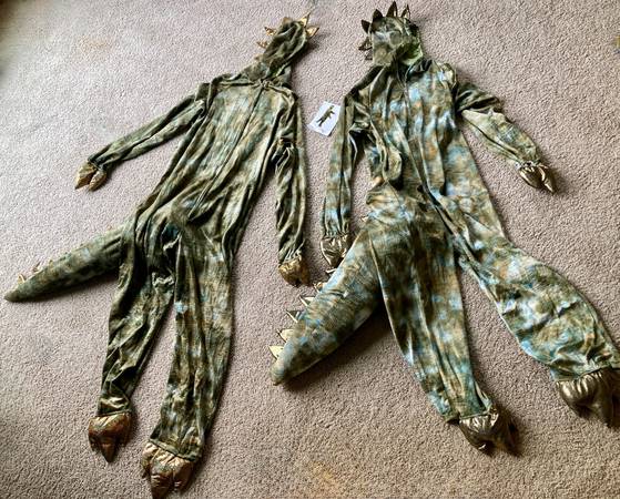 2 NWT Dinosaur Costumes- soft zippered onesies w/ stuffed tails! (size Adult Small & Large) -$15 each perfect for teens or adults.