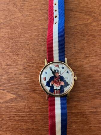 For sale a seventies era, Uncle Sam "Vote" watch. The watch stem and hands move, it winds, but does not keep time. The watch crystal has a small crack between the one and two numbers but otherwise...