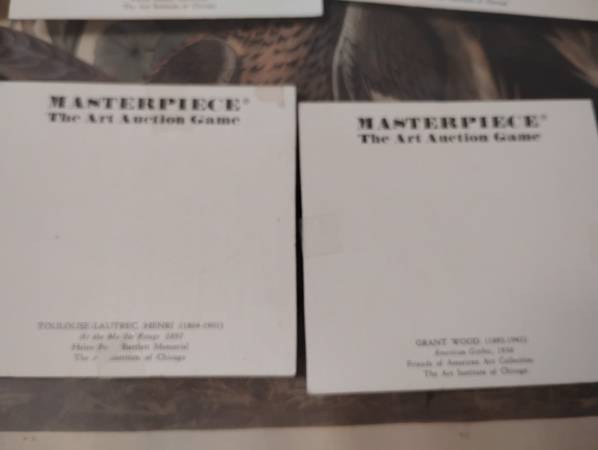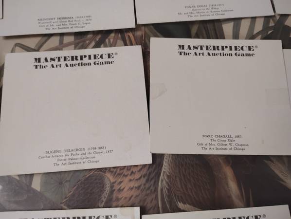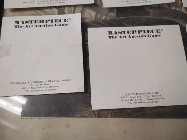 15 Miniature art auction cards from the Art auction game. They are of famous paintings They are not in this frame. They are loose.