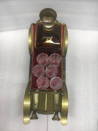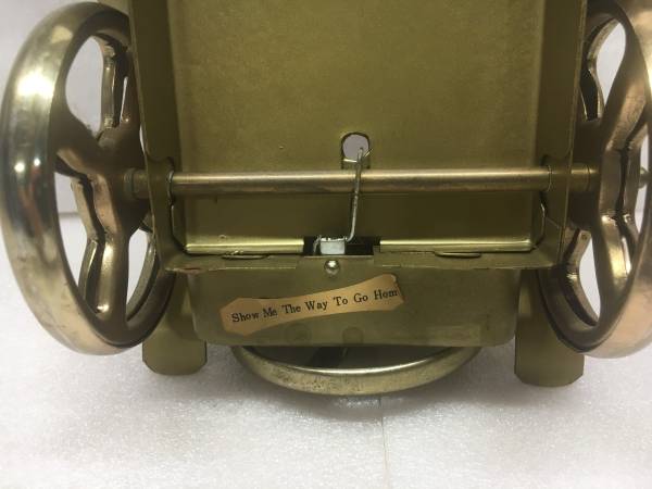 Car is made out of metal Had this since the 70s. Car measures 14 long 6" high without the flask Music box still works, plays Show Me The Way To Go Home