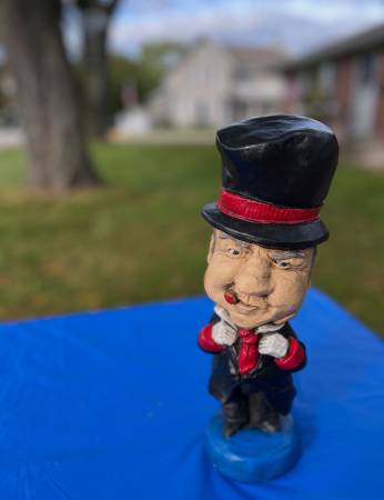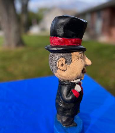 13” tall ceramic bisque statue of W.C. Fields. After it’s been fired in a kiln, the artist hand-painted. Very unique and unusual. Measures 13”H x 4-1/2”W x 4-1/2”D.