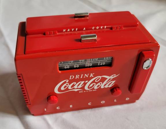 1998 Coca-Cola Cooler Radio Bank, with box, $24 OBO