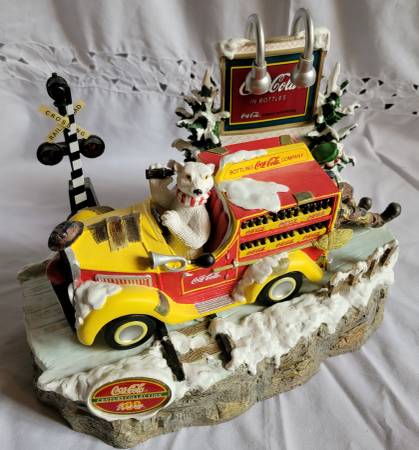 1998 Coca Cola Truck Christmas Polar Bear Featuring Emmett Kelly Jr, lights and music working, truck does not move, $31 OBO