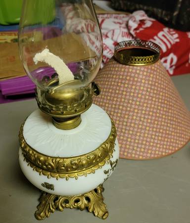 Antique oil lamp, shade is probably not original to lamp, $33 OBO
