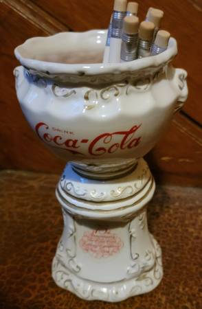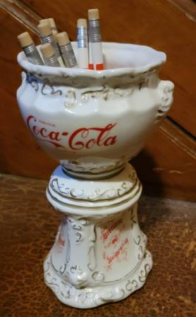 Coca-Cola 75th Anniversary Urn/Pencil Holder, 7” tall, with 10 brand new Coca-Cola pencils, $50 OBO