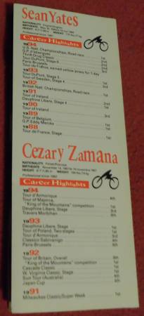 MOTOROLA CYCLING TEAM 1995: A fold out roster of 1995 Motorola Cycling Team. Rider photos on front, brief results resume on back. New, excellent condition. Have three.