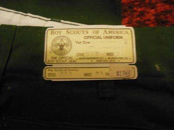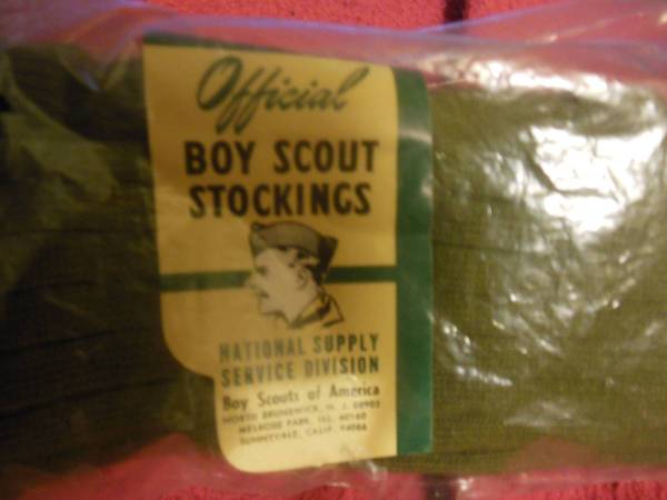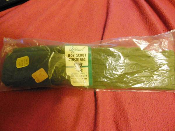 SOCKS, BOY SCOUT KNEE HIGHS: OFFICIAL BOY SCOUT KNEE HIGH STOCKINGS. Sock size 12-14, extra wide calf, 60% combed cotton, 40% stretch nylon. Vat dyed. Cat. 527C. New/never opened, still in the package. 1970's style, purchased in the mid/late 1970's, now a collector's item. Selling online for $10/pair for used socks, $40 for new. I have two pair. Will Sell For $20 A Pair.