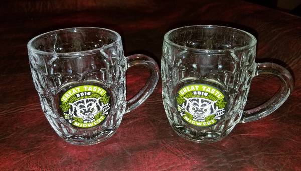 Great Taste of the Midwest Samplers, Beer Mugs, Glasses, Tasters. Brew Fest Glasses. Great Taste of the Midwest, Beer and Cheese Fest, Bacon and Brews Fest, Nitty Gritty Birthday Mugs Madison Mallards. Many more Glasses. Wine Glasses.