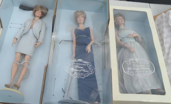 PRINCESS DI DOLLS: Dolls by Franklin Mint or The Ashton-Drake Galleries. Dolls have been out of the box on display so might show some dust, dirt, and wear. Original box included with and accessories for doll. Each with doll stand for display use. In mint condition they can be worth hundred and if rare in the thousands. Generally Sell for $50-$200 on the internet.