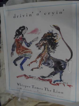 PROMOTIONAL POSTER: A rare vintage poster promoting drivin' n' cryin” by Whisper Tames The Lion, Island Records, Inc., 1988 Promotional Poster. Size: 28x33 inch. Poster in excellent/like new condition.