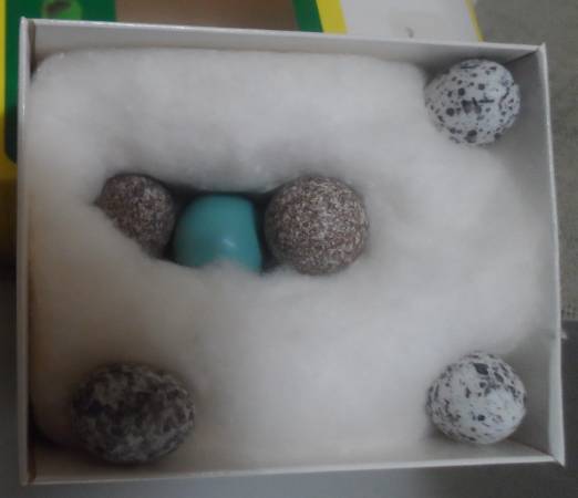 Special: Five eggs without own box. One Robin egg and four others. $30 for all five.