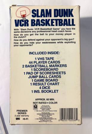 Slam Dunk VCR Basketball - 1989 Halcyon Days Productions Distributed by Simtar Entertainment, Inc.