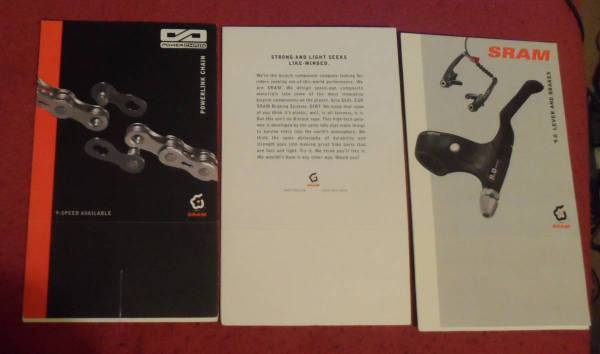 Sram postcards and table A frame promo pieces. Have 23 total postcards with three different designs and three A frames with two different designs.