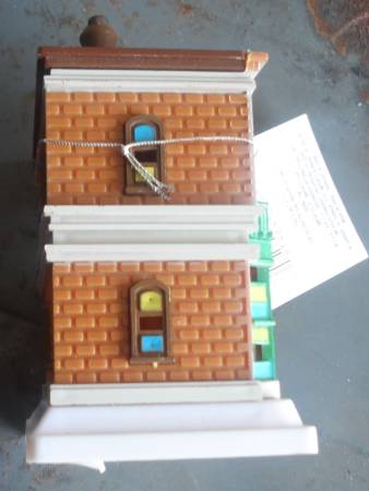 STORE MINIATURE: A Cobblestone Corners Miniature. Access hole on bottom to put a light into it. SIZE: 3.5X2.75 inch base by 4.75 inch high. Designed for display/decorative indoor use only, not as a toy. Use for Christmas scenes, model railroad towns, and more.