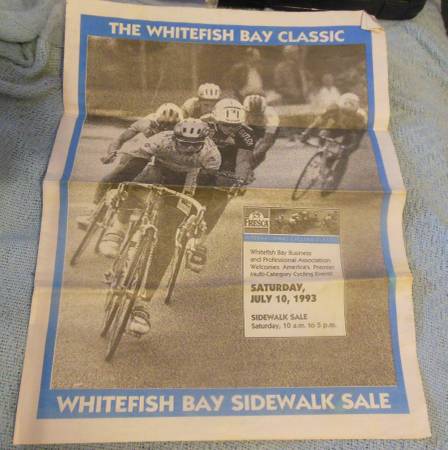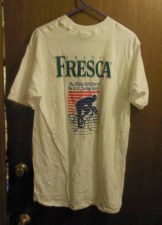Package A: 1993 Official Race Program, ICC Adult Large T-Shirt, Two ICC Fresca Water Bottles, 1993 Saturn Cycling Team Guide, Saturn Cycling Team 1993 ICC race schedule, 1993 Saturn Team photo postcard. All for $30.