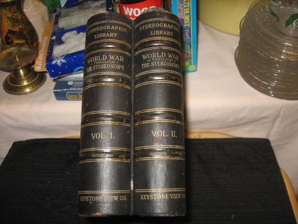 This is a Stereographic Library World War Vol. 1 and Vol. ll. Cards 1-100. Nice condition. Smoke free home. I am asking 300.00. Pick up at my home in Portage or mail for 25.00 more. CASH SALES ONLY.