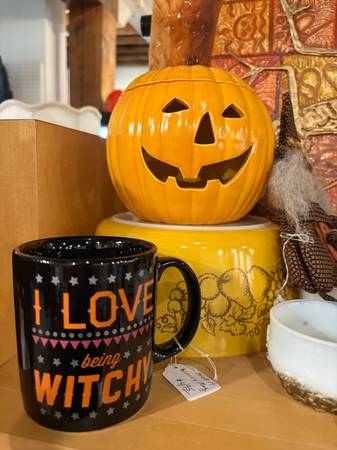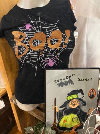 Great Selection of Halloween Decor Including Vintage Clothing Suitable for Costumes