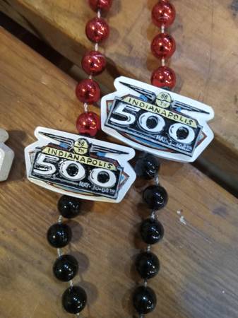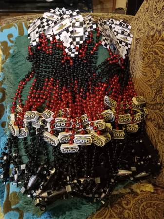 Official black and red beaded necklaces from the 88th Indianapolis 500 race on May 30th, 2004. New, never used with tags and replica cars. Great gifts for your Indy 500 race party this May. I have a total of 30 available. $1 each or discount for quantity.