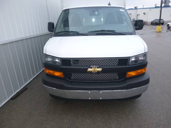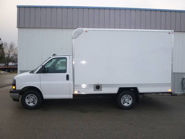 2024 Chevrolet Express Cutaway 12' Service/Utility truck. 4.3L V-6 Gas engine, power locks/windows and mirrors, tilt/cruise, locking differential, chrome package, 12' BayBridge body with roll up rear door, walk ramp, back-up camera, 12" step bumper, just arrived and ready to go.