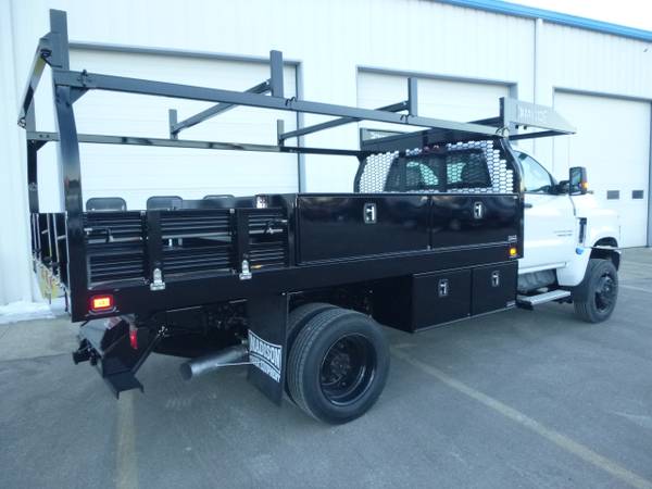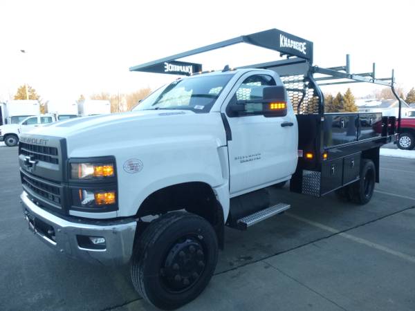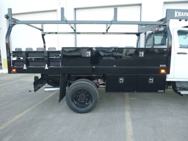 2024 Chevrolet Silverado 5500 4x4 Contractor/Concrete 12' Flatbed utility truck, Duramax diesel, power locks/windows/mirrors, am/fm, tilt/cruise, 4X4, 12' Knapheide contractor body with side compartments and class 5 trailer hitch, Just arrived and ready to go.