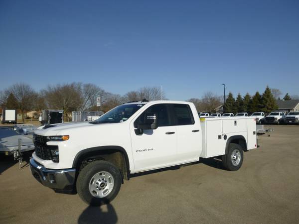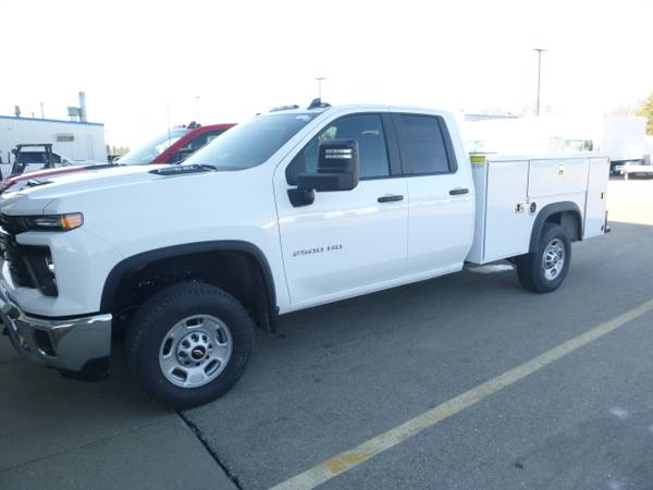 2025 Chevrolet Silverado 2500 Double cab Service/Utility Truck, 10,200 GVWR, 6.6L Gas engine, power locks/windows/mirrors, plow prep package Monroe S-Series 8' steel service body with hitch package and spray in liner.