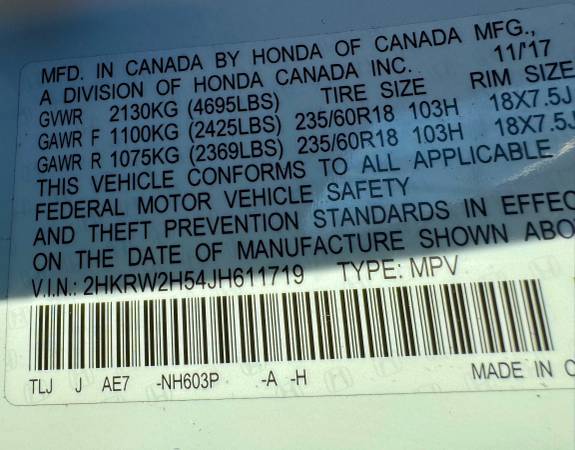 **Vin: 2HKRW2H54JH611719 with 85,471 miles**