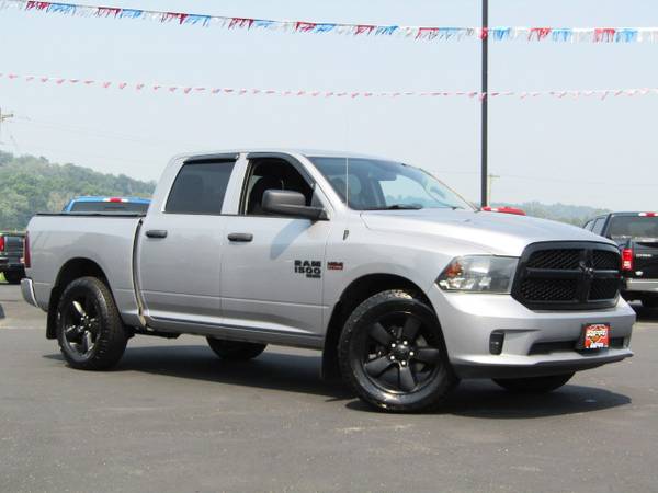 5.7L HEMI V8 CREW CAB 4X4. 20' factory black wheels with new Goodyear Trailrunner A/T tires! Touchscreen radio with backup camera, sprayed in bed liner, tow package, and a clean Carfax history on this 1 owner! Green County's #1 Volume Dealer! ***PRICE INCLUDES WARRANTY***