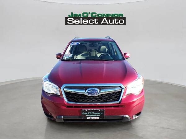 36 DAY SELECT AUTO WARRANTY ON THIS 2016 SUBARU FORESTER 2.5i TOURING. ALL WHEEL DRIVE WITH 121K MILES. POWER DRIVER SEATS. LEATHER INTERIOR WITH HEATED FRONT SEATS. POWER LIFT GATE. KEYLESS ENTRY. CRASH PREVENTION. PUSH BUTTON START. MOONROOF. BLIND SPOT MONITOR. TRAILER HITCH READY. BACK UP CAMERA. HARMAN KARDON PREMIUM STEREO SYSTEM. NAVIGATION. BLUETOOTH. LANE KEEP ASSIST. 5 PASSENGER. TIRES 7/32". FRONT BRAKES 70%. NEW REAR BRAKES. GREAT SAFETY.