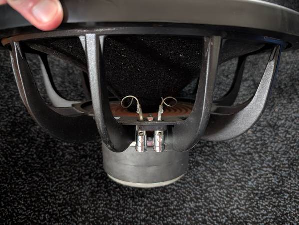 This sub was working when pulled, it's just dusty from sitting. No repairs and no damage ever. Single 4 ohm voice coil.