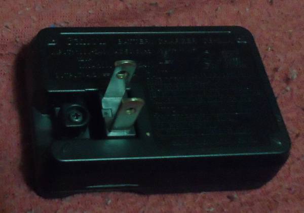 BATTERY CHARGER: A Canon Brand battery charger model CB-2LA for many Power Shot cameras, battery NB-8L. Plugs into standard 110 or 240 AC wall outlet for a 2.4V, 0.65A charge to rectangular (appox 1.5 inch square) batteries.