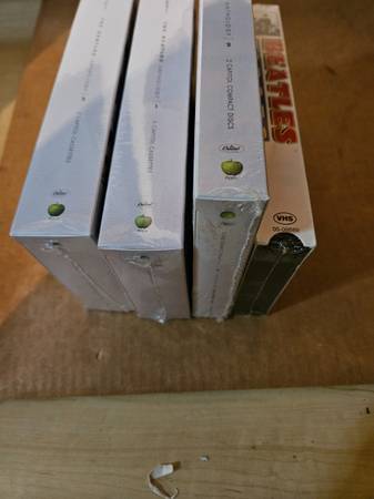 Comes with 2 sealed cassette tapes. Each case has 2 tapes. Two cds set VHS tape all sealed. Vintage Beatles glass All for $75 pick up in Grand Marsh WI or possibly Madison WI east side, Portage or...