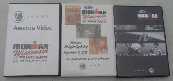 IRONMAN WISCONSIN MADISON DVD: A DVD of the 2003, 2005, and 2007 race highlights at the Madison, Wisconsin IronMan held in September of those years. Produced by Janus. New, unviewed. Only one copy left of each year.