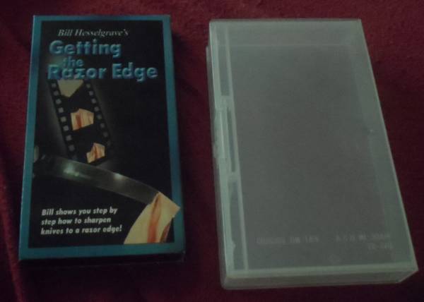GETTING THE RAZOR EDGE: A VHS format tape by Bill Hesselgrave on how to get the razor edge on a knife. Get a clear plastic protective case with tape.