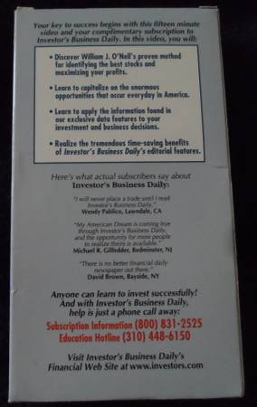 STOCK MARKET SUCCESS: Two VHS tapes by William J. O'Niel, the founder of Investor's Business Daily, on an informative seminar on business and investing. Learn a special method to pick stocks about to increase in value and how to mange them. Buy, sell, hold, invest in stocks and mutual funds with confidence. Viewed once. Will cost you over $15 online, Get Both For Only $1.
