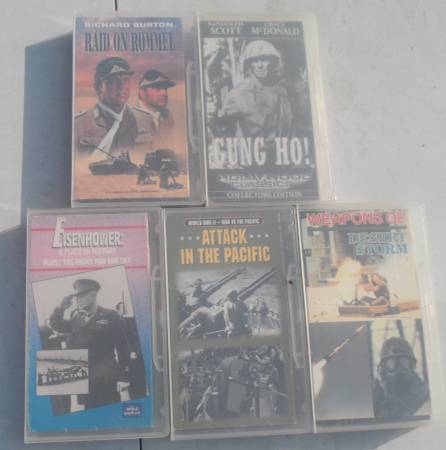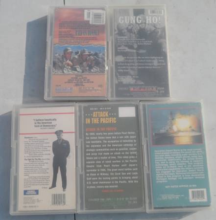 VHS format movies that have been viewed a few times. Each comes with a protective case. $1 each.